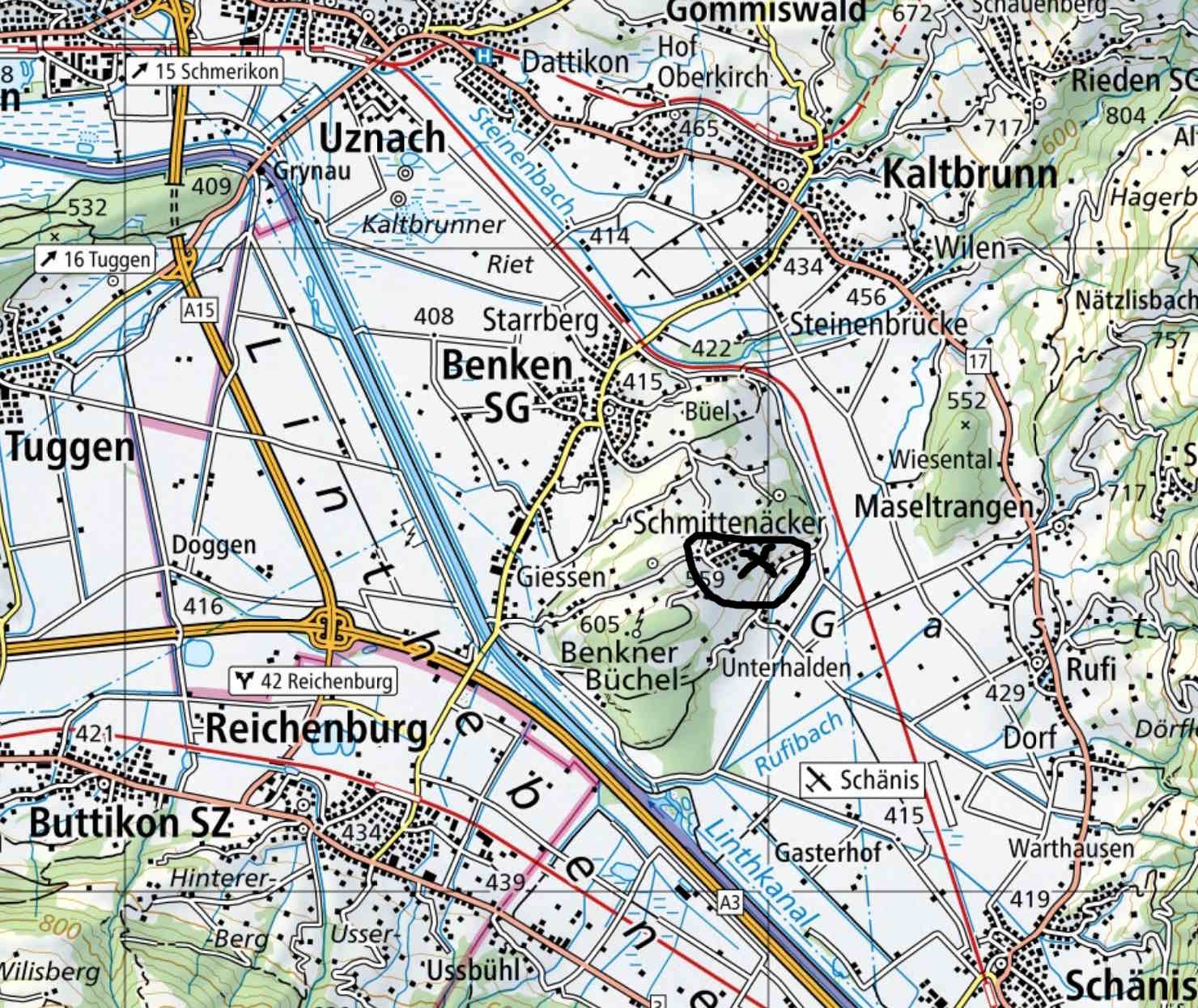 Landeskarte (Schmittenäcker/Buggriet auf dem Benkner Büchel)